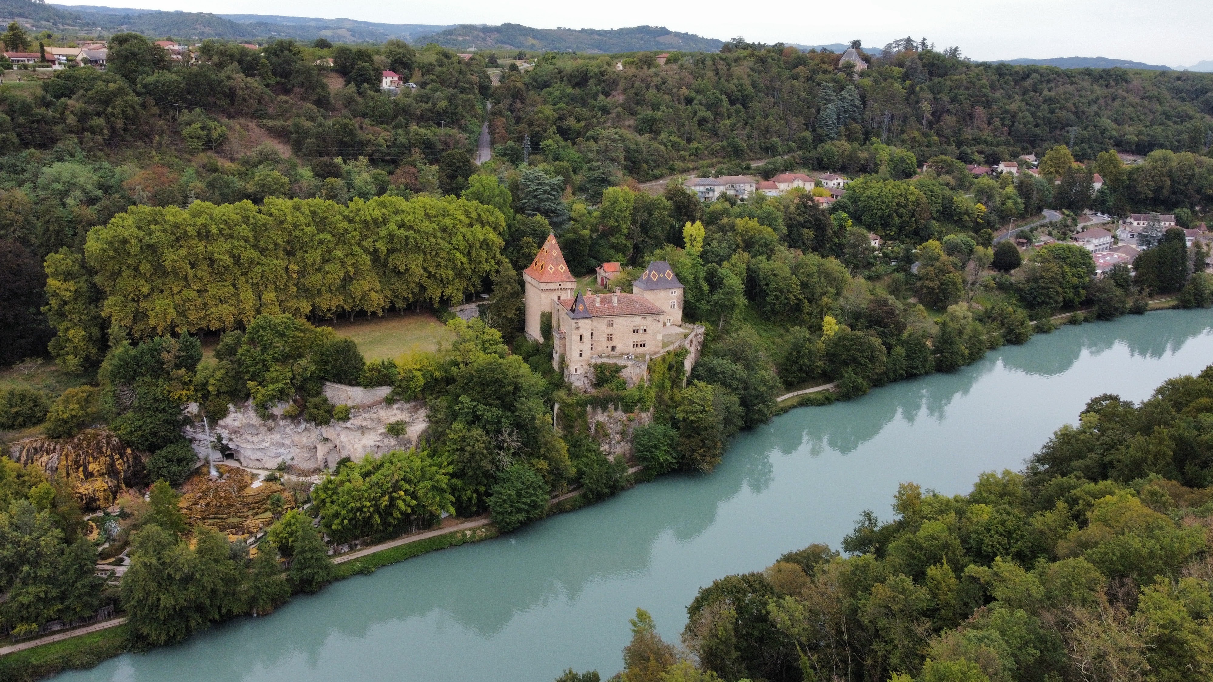 A medieval fortress complemented by a pleasure castle, this witness to eleven centuries of history stands proudly on its rocky outcrop overlooking the Is猫re river. Its three corner towers with shimmering glazed roofs and machicolations make it an unmistakable landmark.